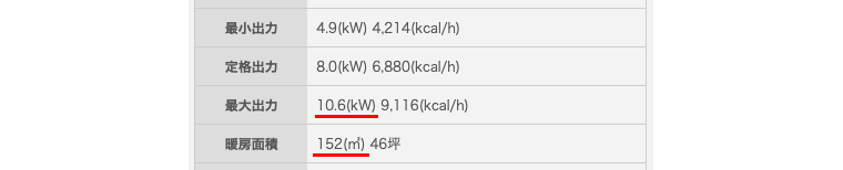 10.6kW×14.33㎡=151.8988㎡ 約152㎡