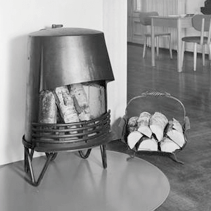 1950年代初頭、発売されたフリースタンディング暖炉PEIS(パイス)150。初のフリースタンディング暖炉。暖炉をそのまま容易に設置できるものとして、さらに炎をみれるモデルで人気を博した。