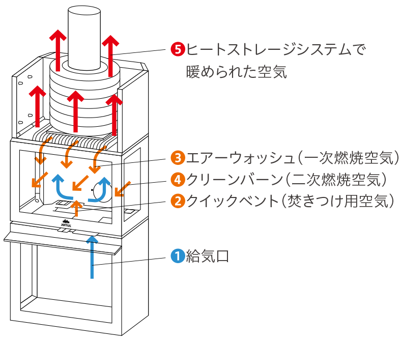 Jøtul F 520 HIGH TOP は、約60kgの蓄熱性のあるカンラン石を組み込める特別なモデルで、柔らかな暖かさが約12時間放出されるヒートストレージシステムを導入することができます