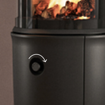 Zensoric(センソリック)による空気制御は自動で行われますが、好みに応じて空気調節ノブで手動調整することも可能です。空気調節ノブは扉の下に設置されており、火加減を微調整して快適な暖房を実現できます。ノブは5段階の調節機能を備えており、炎の大きさや暖かさを好みに合わせて簡単にお調整いただけます。Zensoric(センソリック)は常に最適な燃焼状態を維持するように空気の流れを調整します。